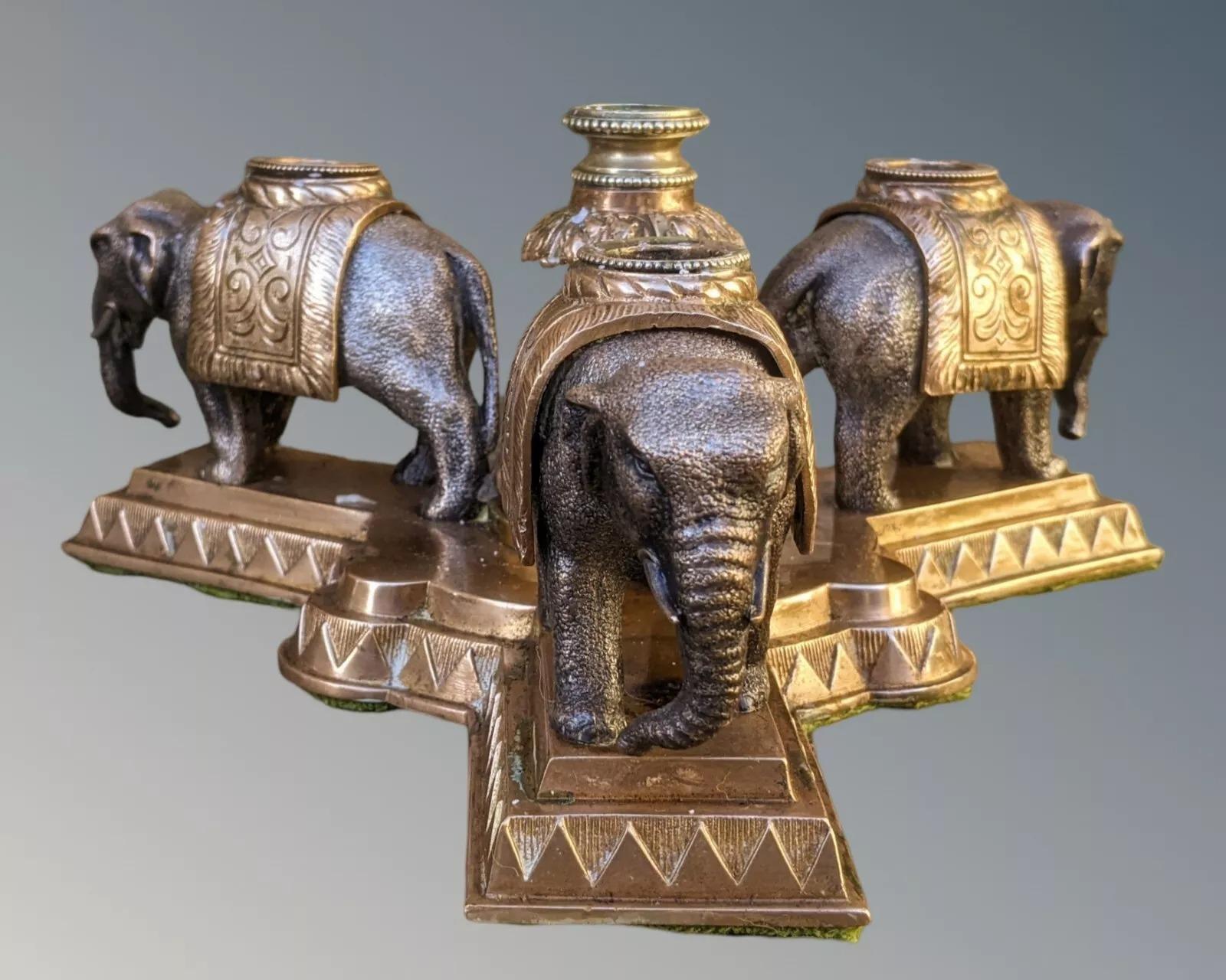 Fabulous Gilt Bronze Elephant Candelabra Centrepiece