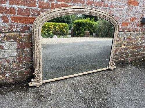 Fabulous Good Size Antique English 19th Century Carved Wood & Gesso Arched Top Painted Overmantle Mirror