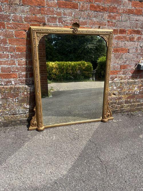 Fabulous Good Size Antique English 19th Century Carved Wood & Gesso Gilt Overmantle Mirror