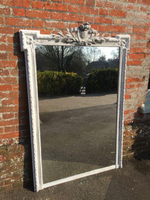 Fabulous Large Antique 19th Century French Carved Wood & Gesso Painted Shaped Top Mirror