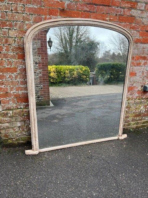 Fabulous Large Antique English 19th Century Carved Wood & Gesso Arched Top Painted Overmantle Mirror