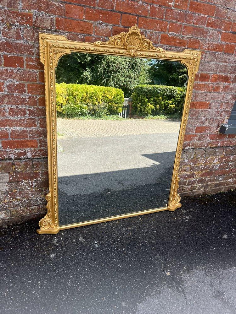 Fabulous Large Antique English 19th Century Gilt Overmantle Mirror