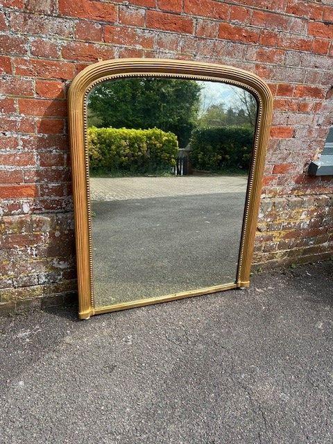Fabulous Large Antique French 19th C Carved Wood & Gesso Arched Top Gilt Ribbed Framed Overmantle Mirror
