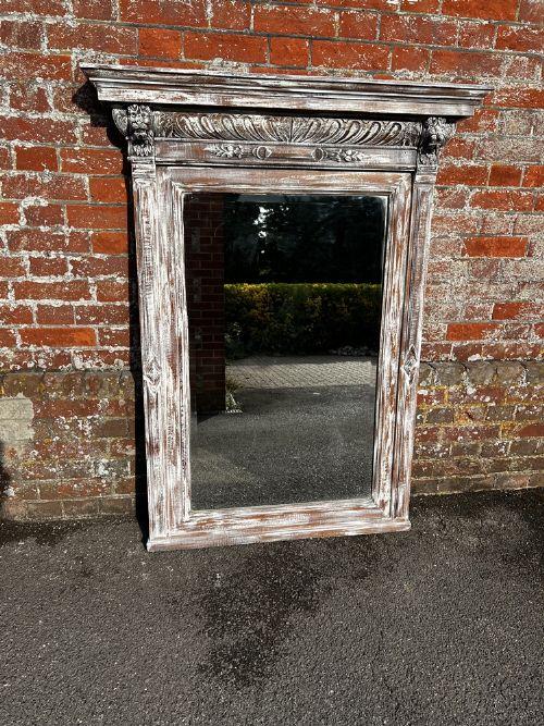 Fabulous Large Antique French 19th Century Carved Wood Distressed Painted Mirror