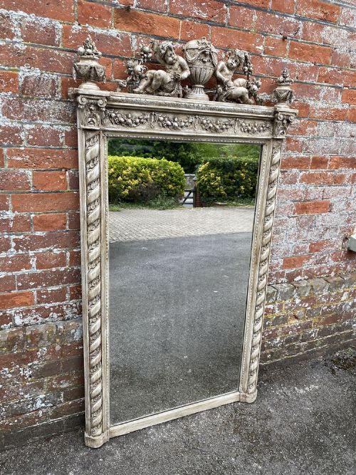 Fabulous Large Antique French 19th Century Carved Wood & Gesso Painted Ribbed Framed Mirror