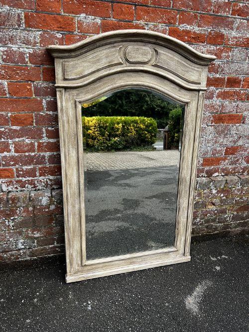 Fabulous Large Antique French 19th Century Carved Wood Painted Shaped Top Mirror