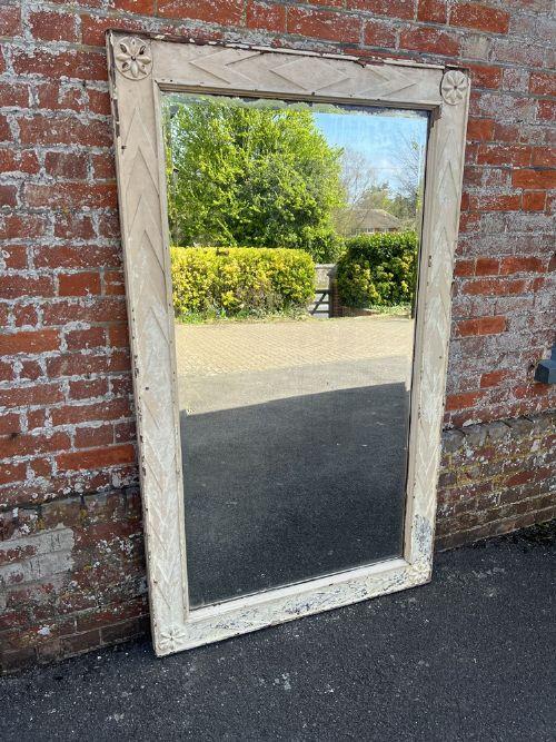 Fabulous Large Antique Swedish Craved Wood Original Distressed Original Painted Mirror