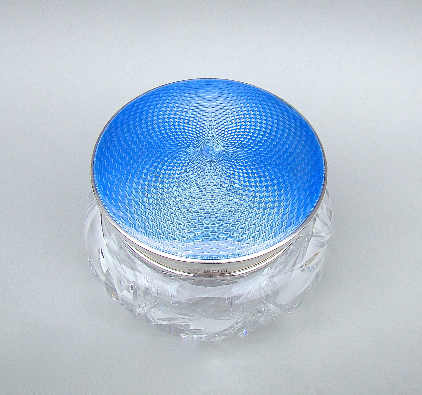 Fabulous Large Art Deco Silver & Guilloche Enamel Powder Bowl by the Adie Brothers, Birmingham 1927