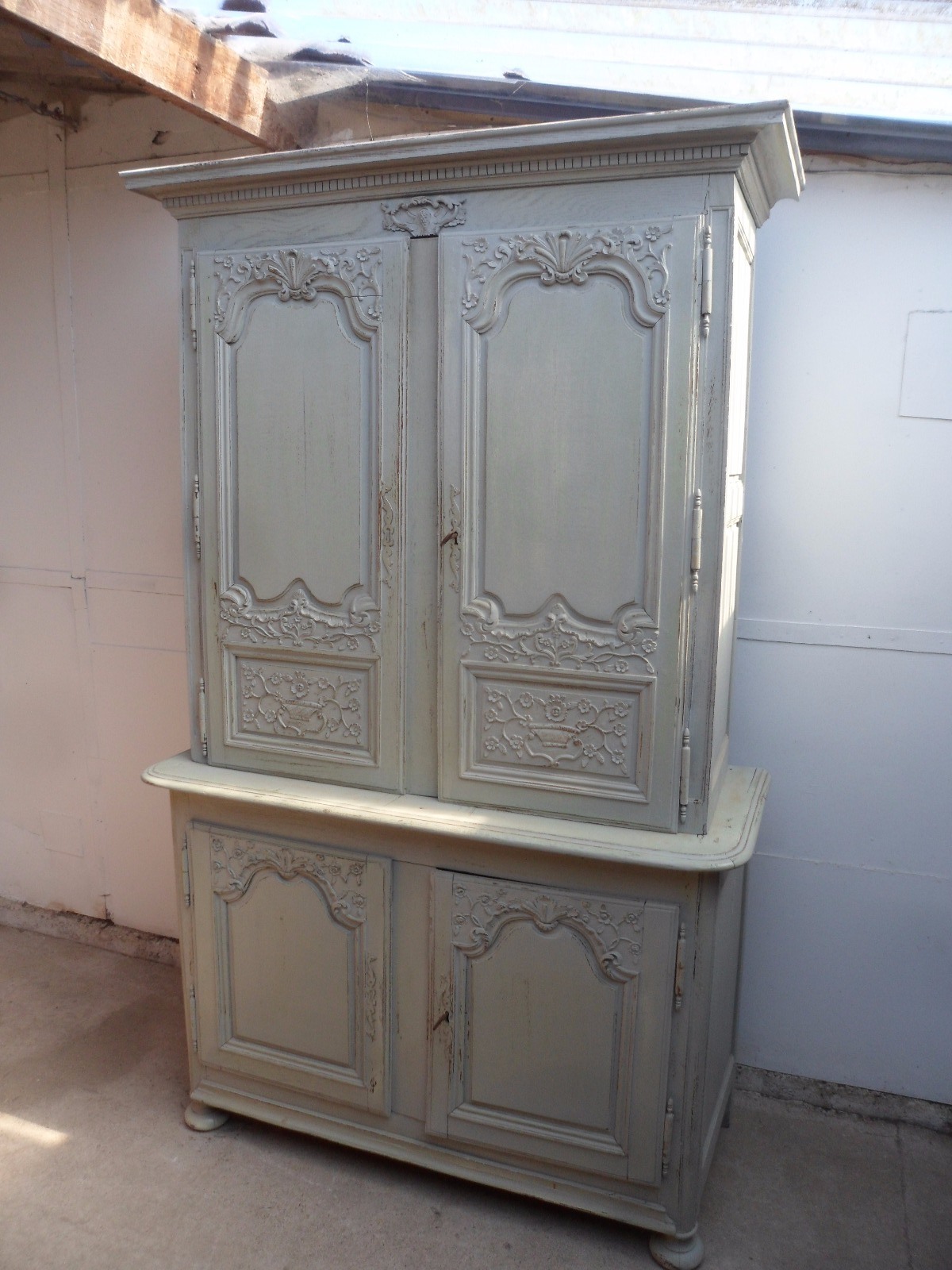 Fabulous Large French Solid Oak Carved Painted Shabby Chic Kitchen Cupboard