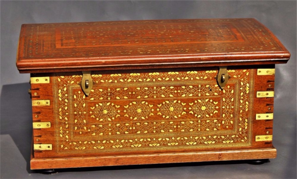 Fabulous Large Indo-Persian Hardwood Chest Brass Inlay Perfect Coffee Table