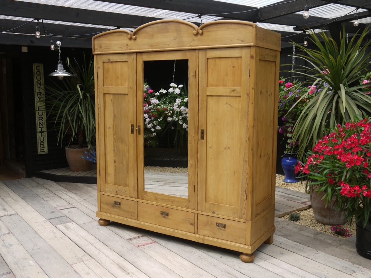 Fabulous! Large & Quality Old Antique Pine Triple Knock Down Sectional Wardrobe