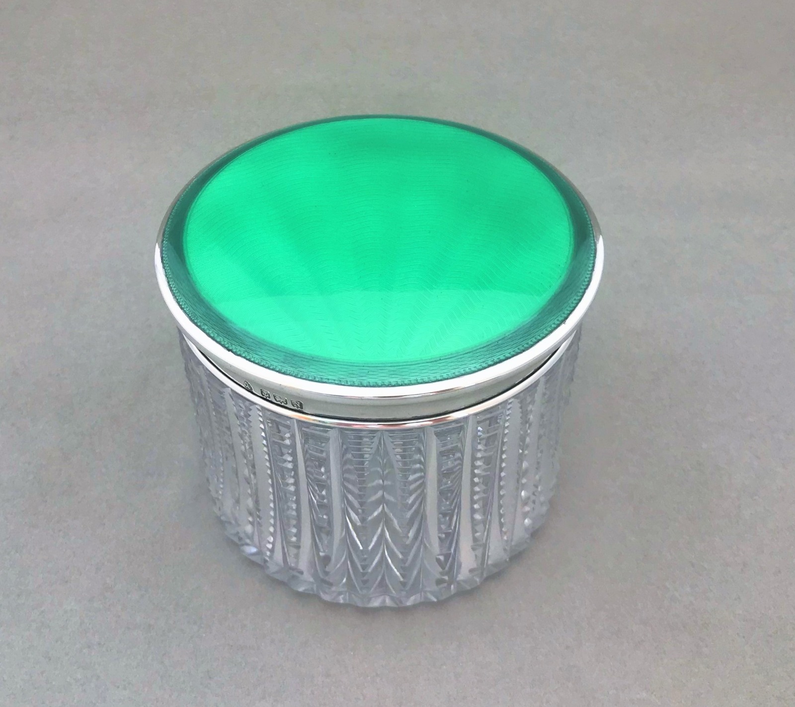Fabulous Large Silver & Guilloche Enamel Dressing Table Jar