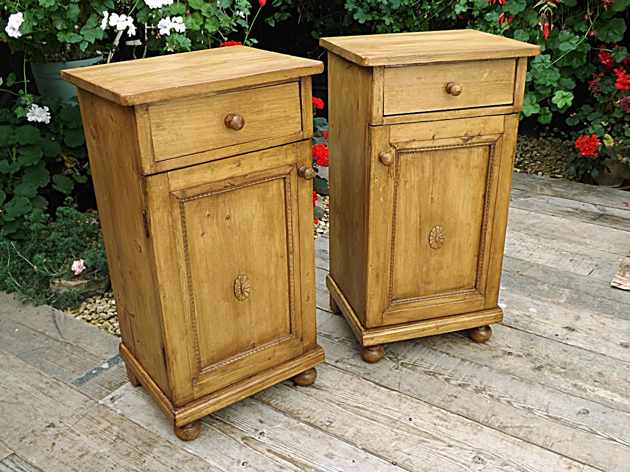 Fabulous Matching Pair of Old Antique Pine Bedside Cabinets / Cupboards. We Deliver!
