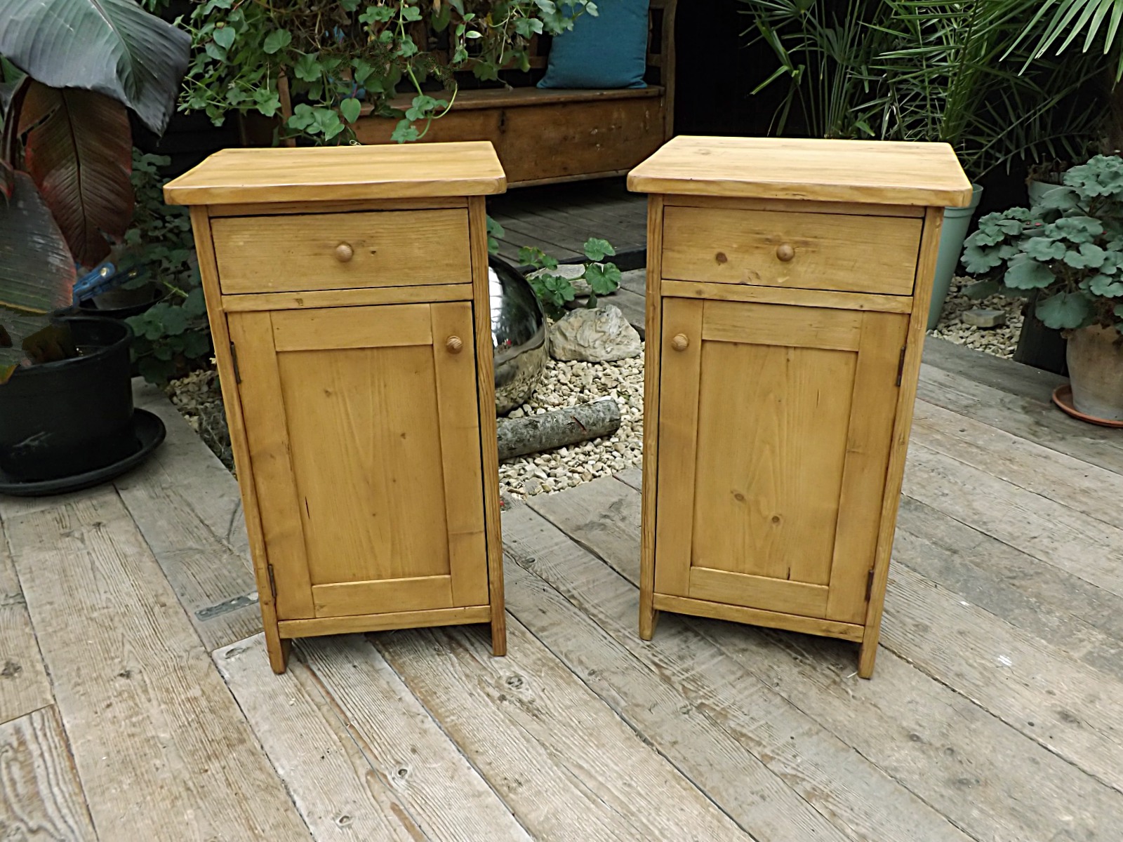 Fabulous Matching Pair Old Antique Pine Bedside Cabinets / Cupboards. We Deliver!