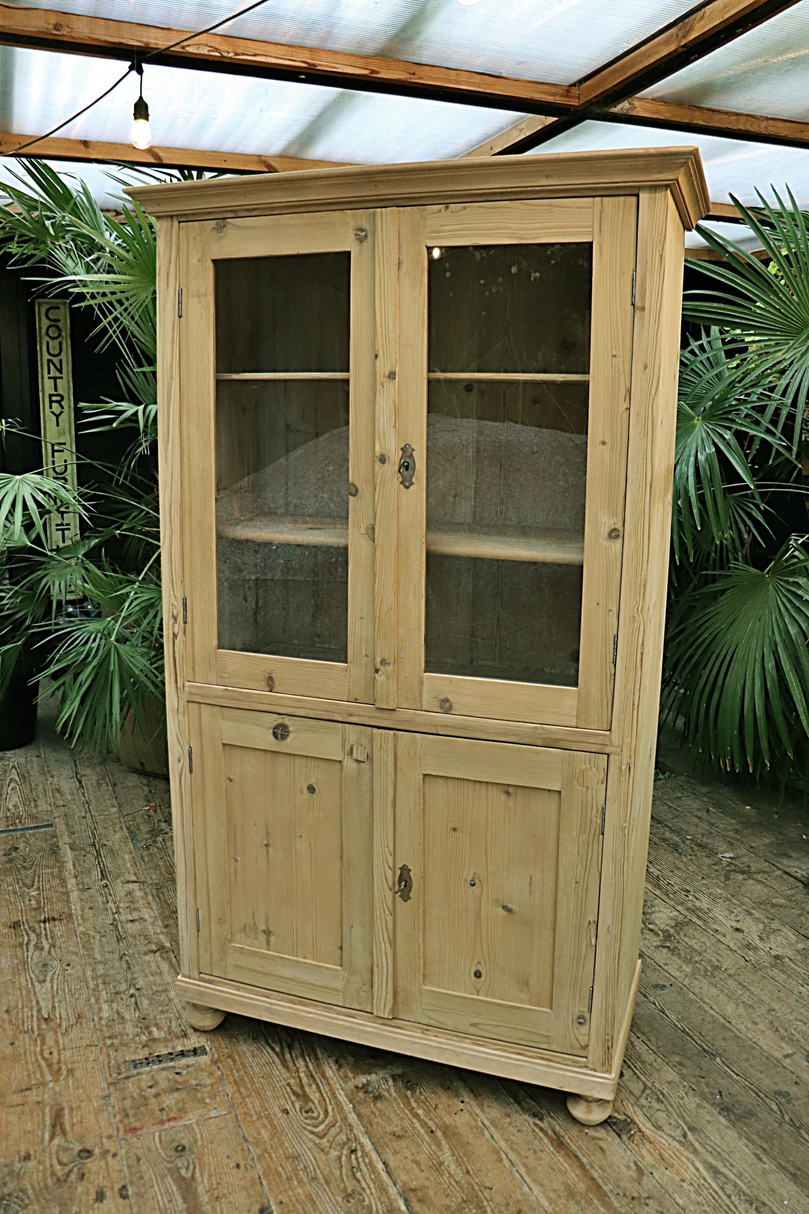 Fabulous Old Pine Glazed 4 Door Cupboard - Display / Larder / Linen