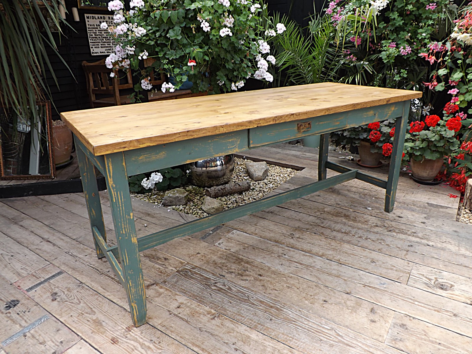 Fabulous Old Pine & Green / Blue Painted Kitchen / Dining 6Ft Table - We Deliver!