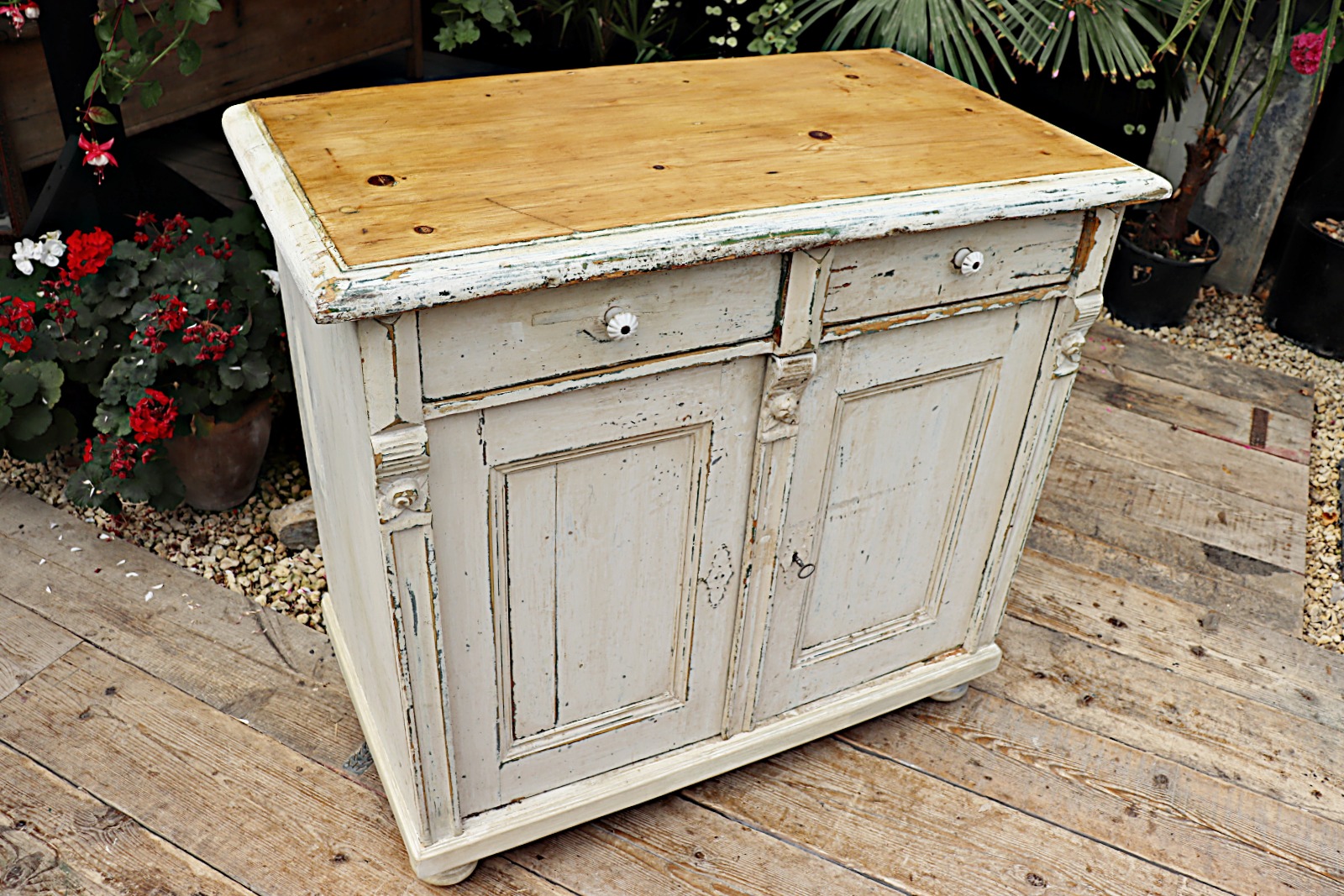 Fabulous Old Pine/ Painted White Dresser Base Sideboard / Cupboard - We Deliver!