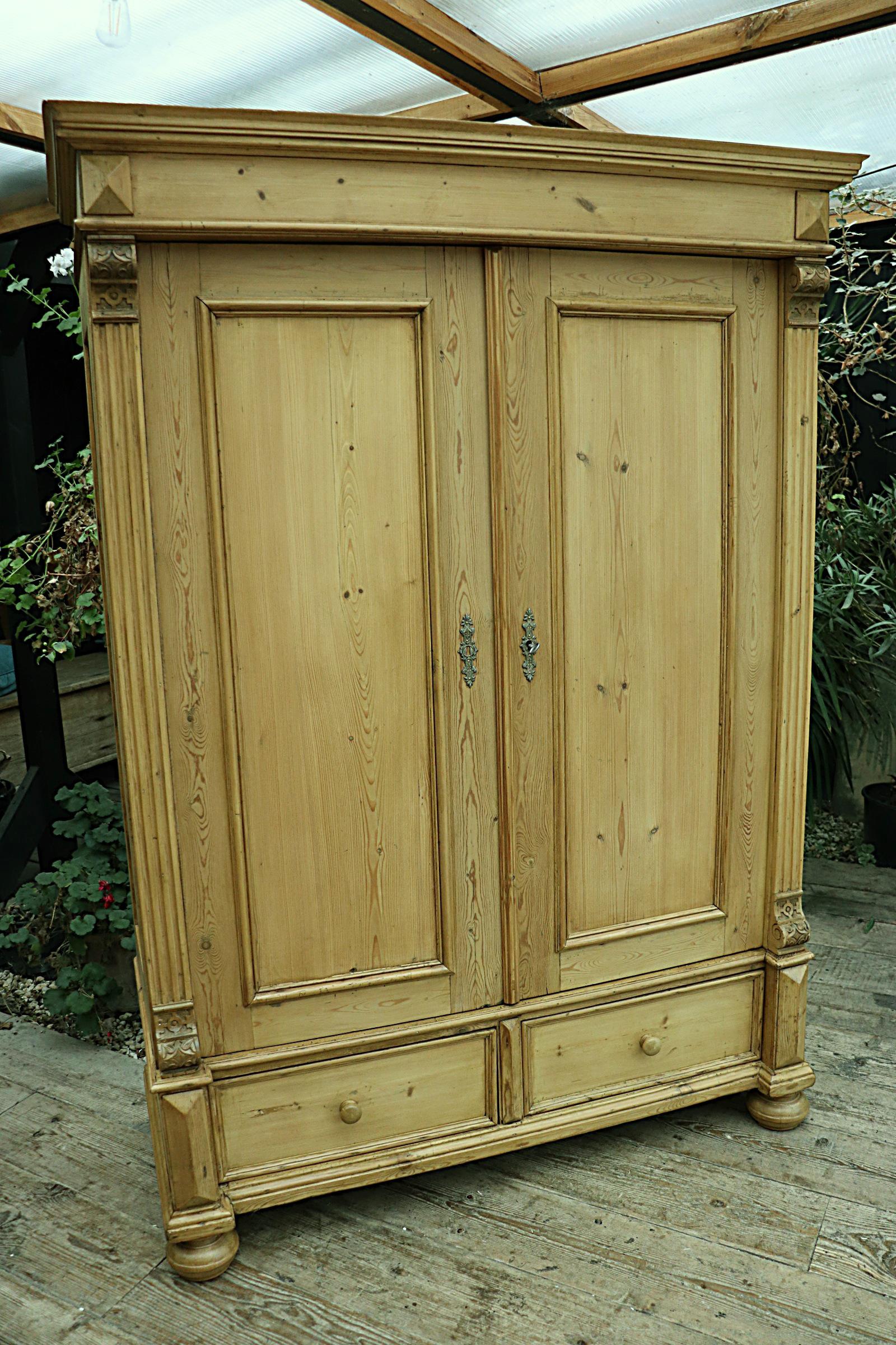 Fabulous Old Pine Victorian Double 'Knock-Down' Combination Wardrobe