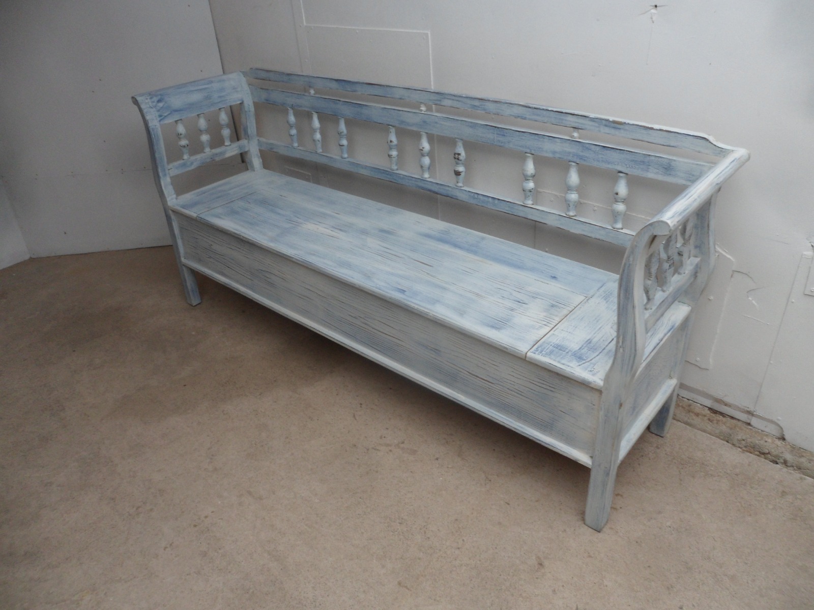 Fabulous Painted Blue & White Antique Pine Hall / Kitchen Box / Settle / Bench