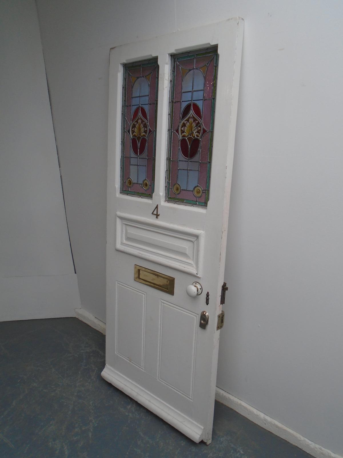 Fabulous Painted Victorian Antique Pine Stained Glass Front Door