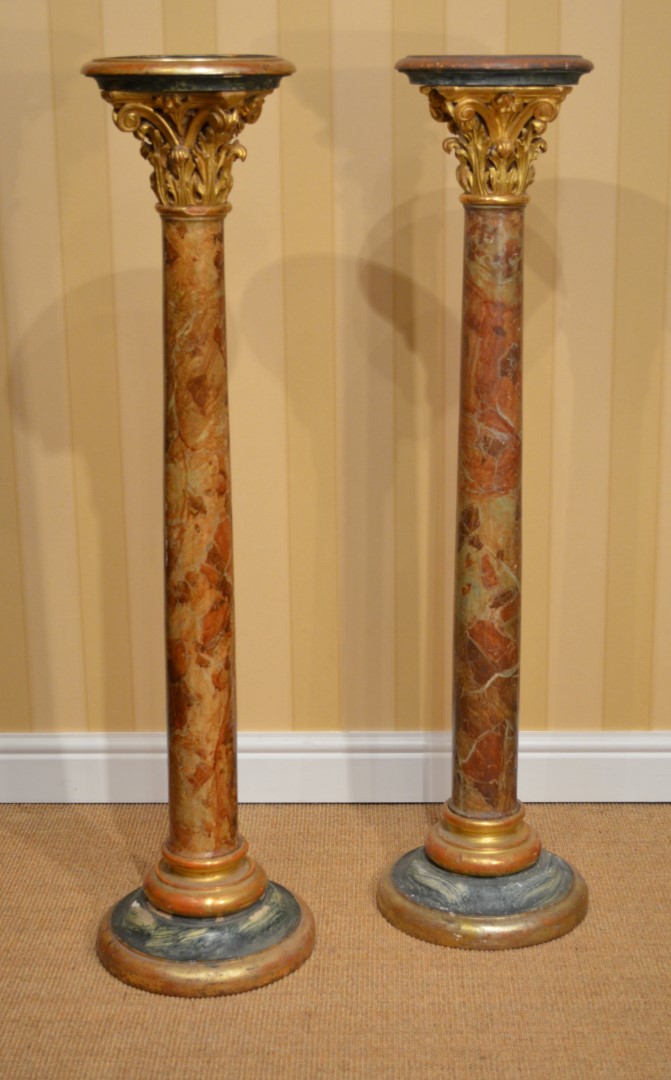 Fabulous Pair of 19th Century Gilt Wood & Faux Marbled Plant Stands or Torcheres