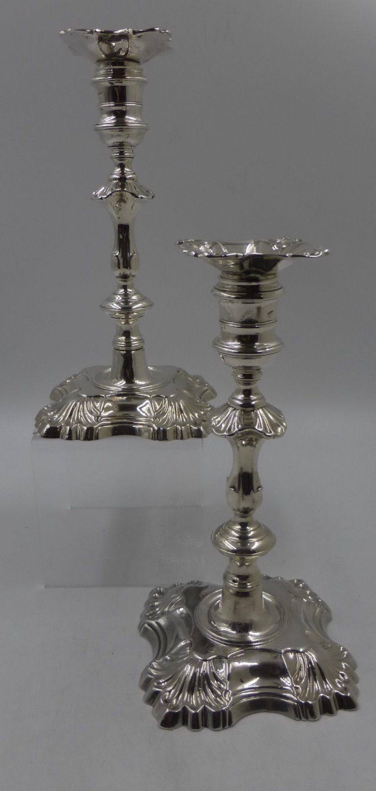 Fabulous Pair of Antique George II Cast Silver Candlesticks. London 1748