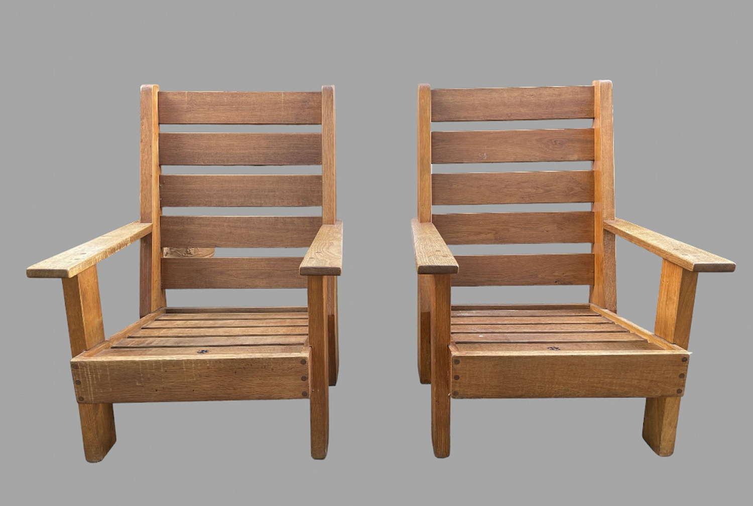Fabulous Pair of 'Atelier Stamped' French Oak Chairs c.1950