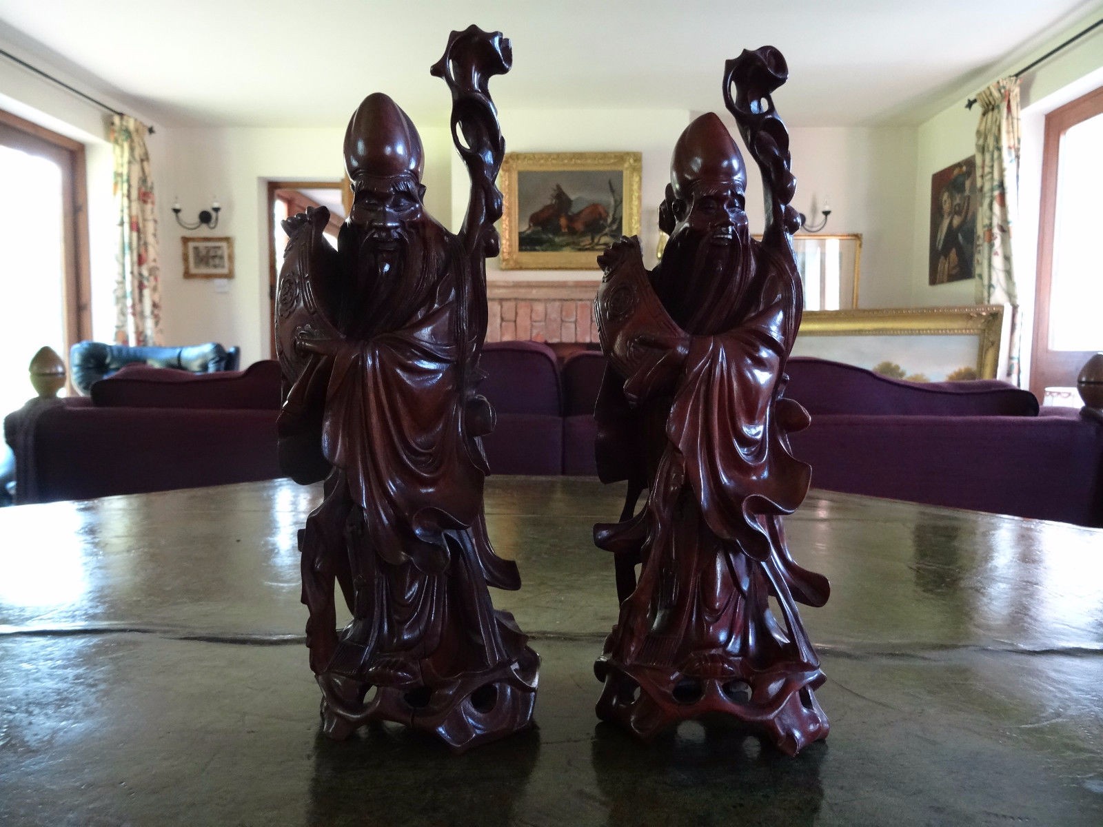 Fabulous Pair of Early 20th Century Oriental Rosewood 'Gods Sages'