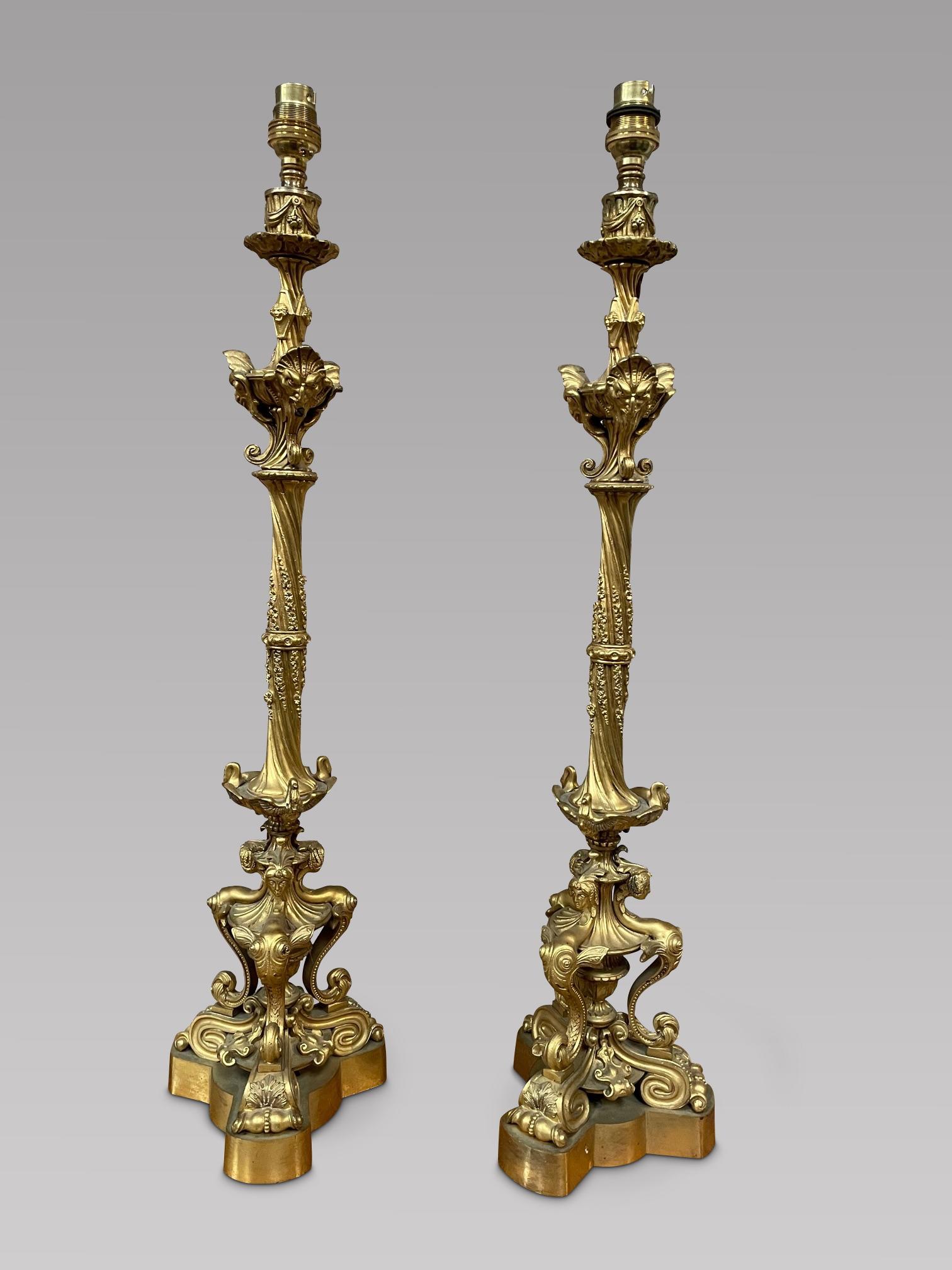 Fabulous Pair of French Gilt Bronzed Lamps