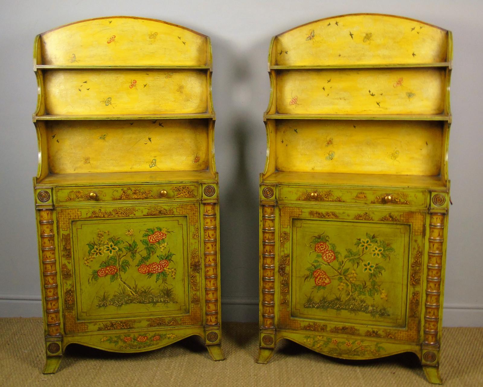 Fabulous Pair of Regency Style Chinoiserie Alcove Bookcase Cabinets