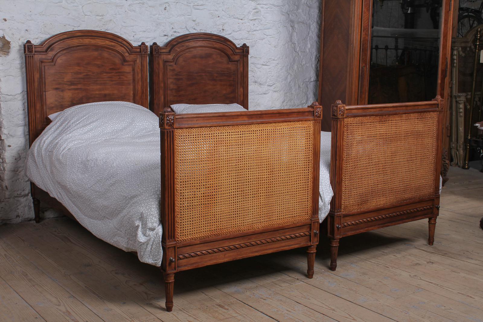 Fabulous Pair of Single Henri II Style Cane & Wood Single Beds