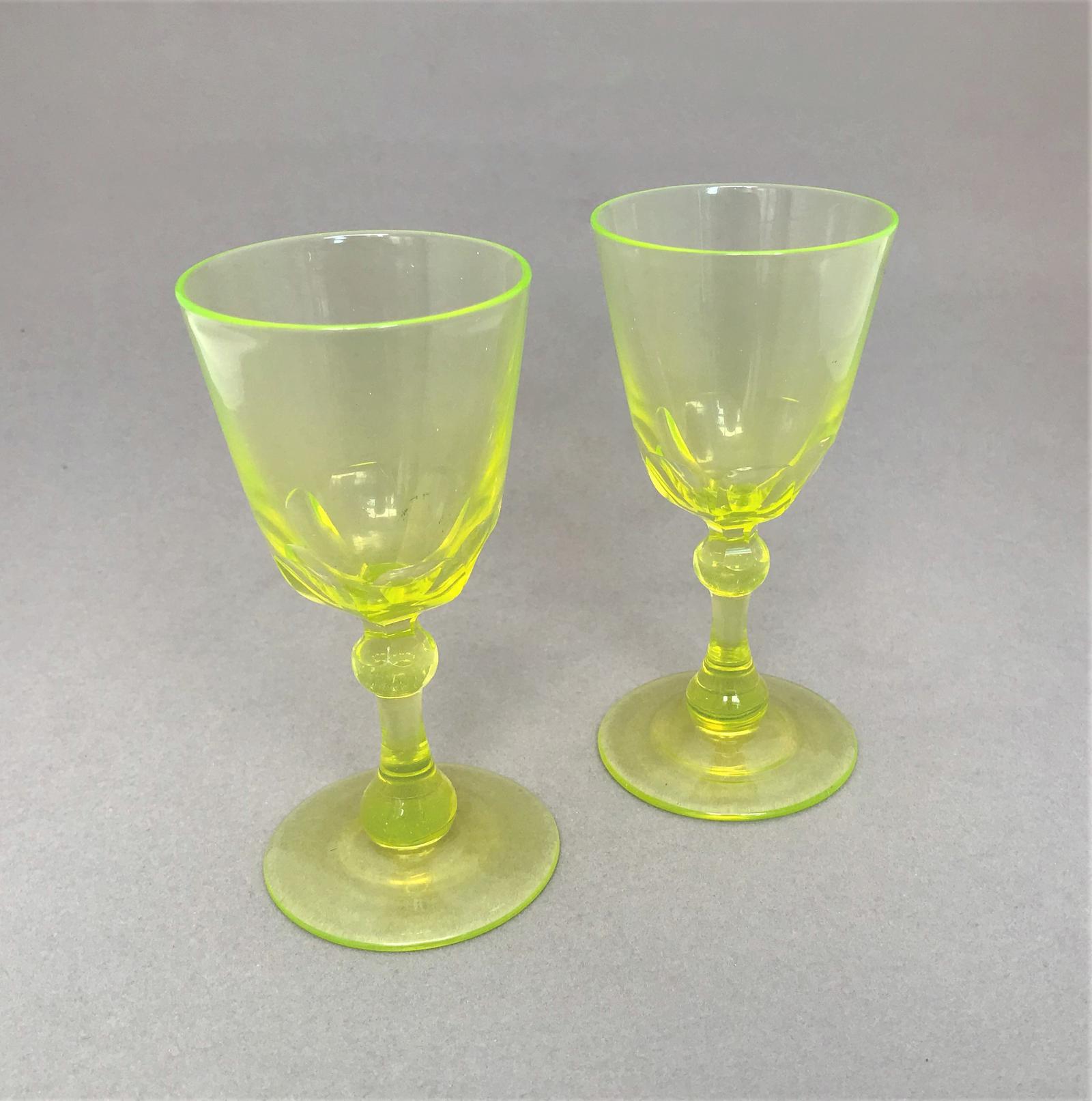 Fabulous Pair of Victorian Uranium Wine Glasses