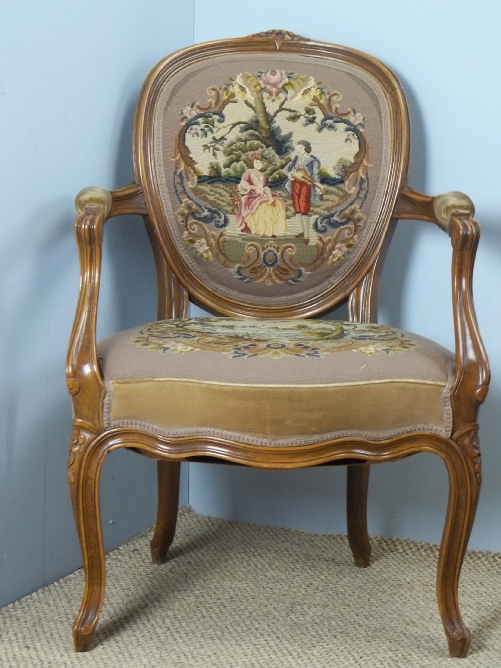 Fabulous Quality French Hand Stitched Needlepoint Tapestry Upholstered French Louis XV Design