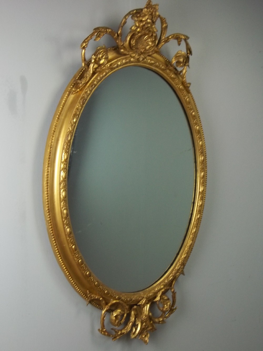 Fabulous Quality Large 19th Century Oval Water Gilt Wall Mirror Gilded Looking Glass