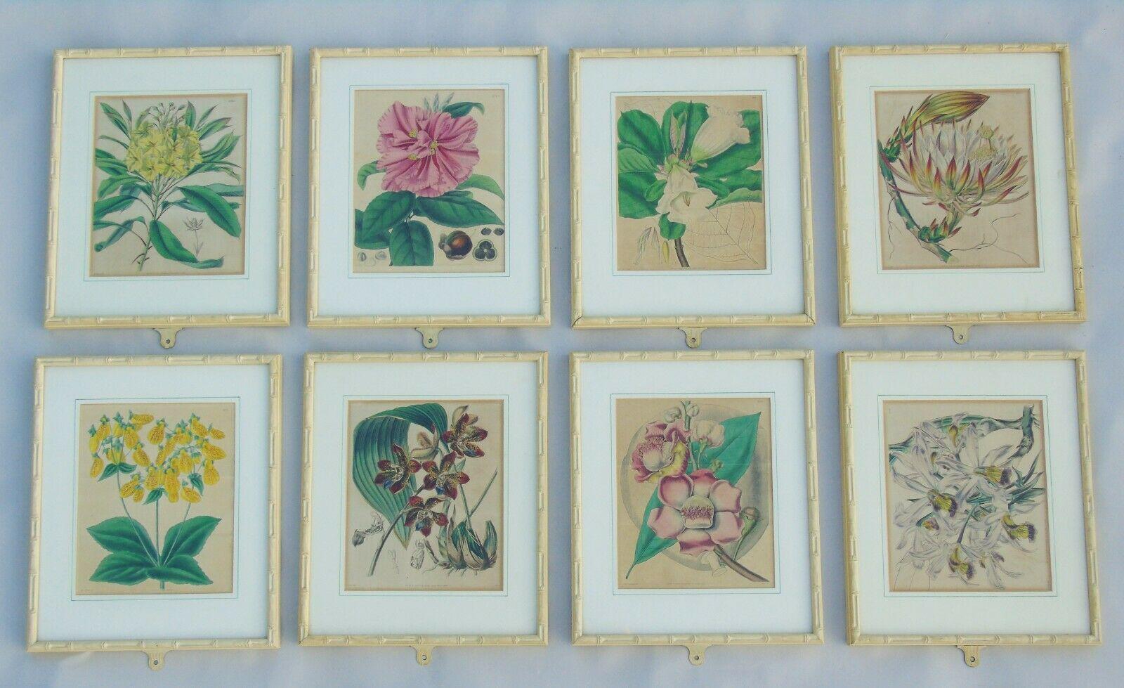 Fabulous Set of 8 Hand Coloured Botanical Engravings Framed Curtis Swan