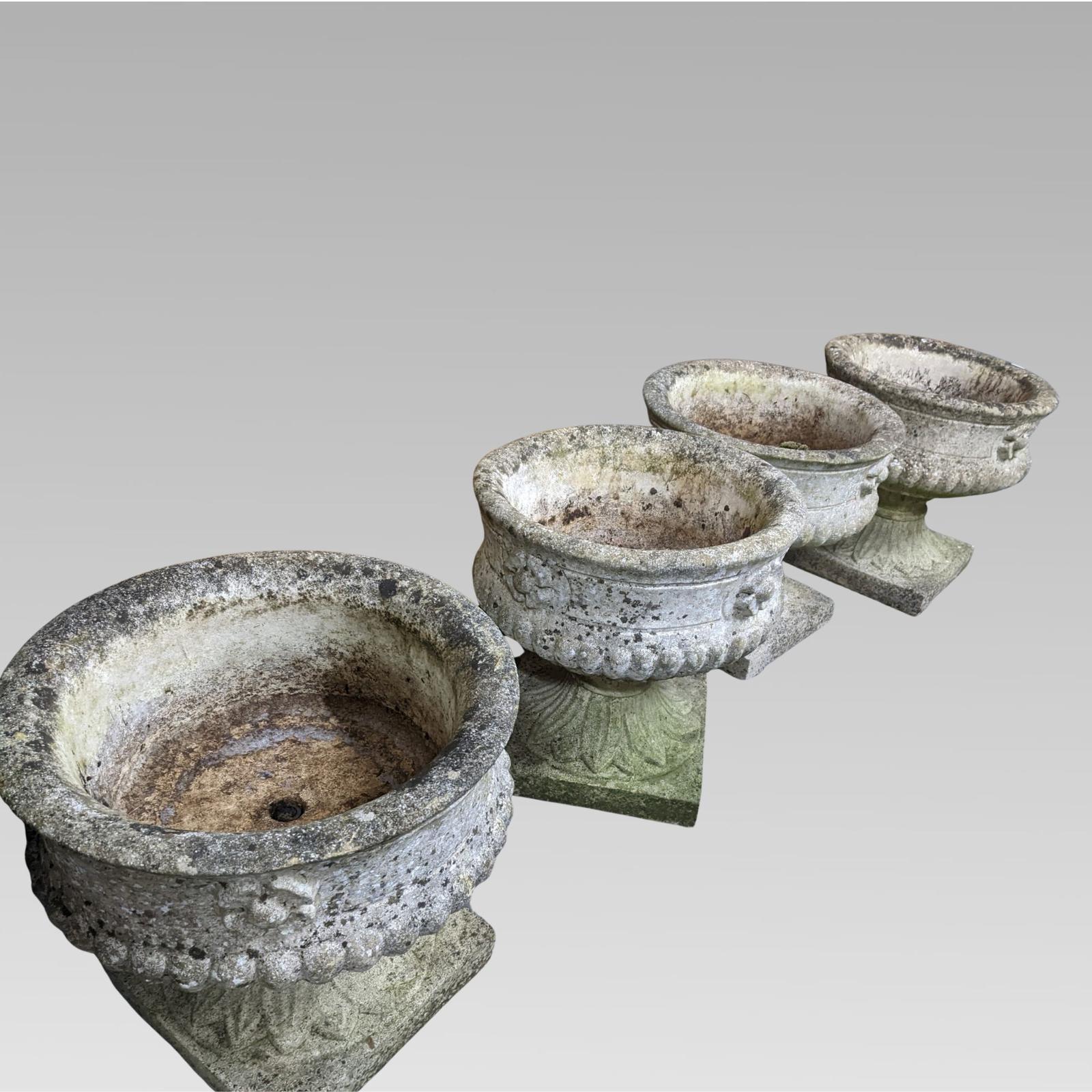 Fabulous Set of 4x Matching Quality Vintage Weathered Stone Composition Garden Planter Urns