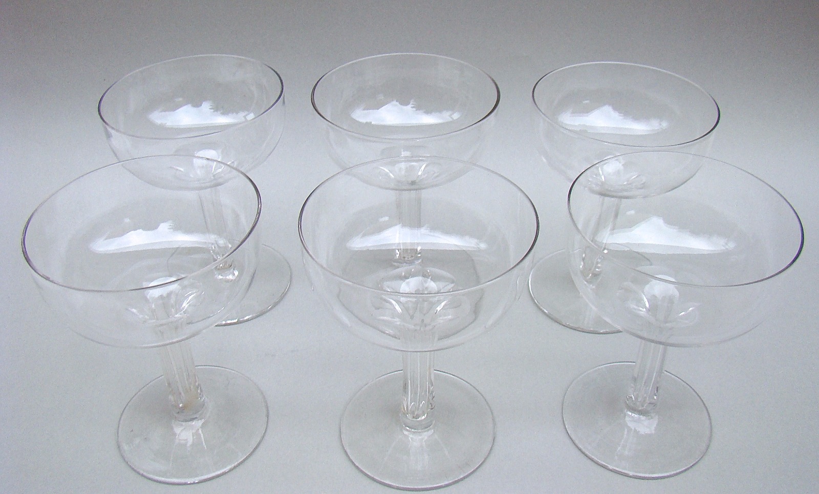 Fabulous Set of Six Victorian Hollow Stem Champagne Glasses C.1880