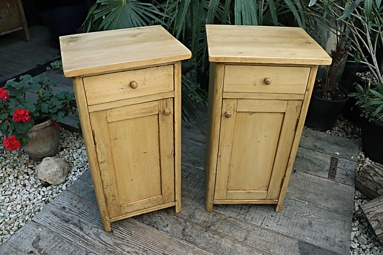 Fabulous & Slim Pair of Old Pine Bedside Cabinets