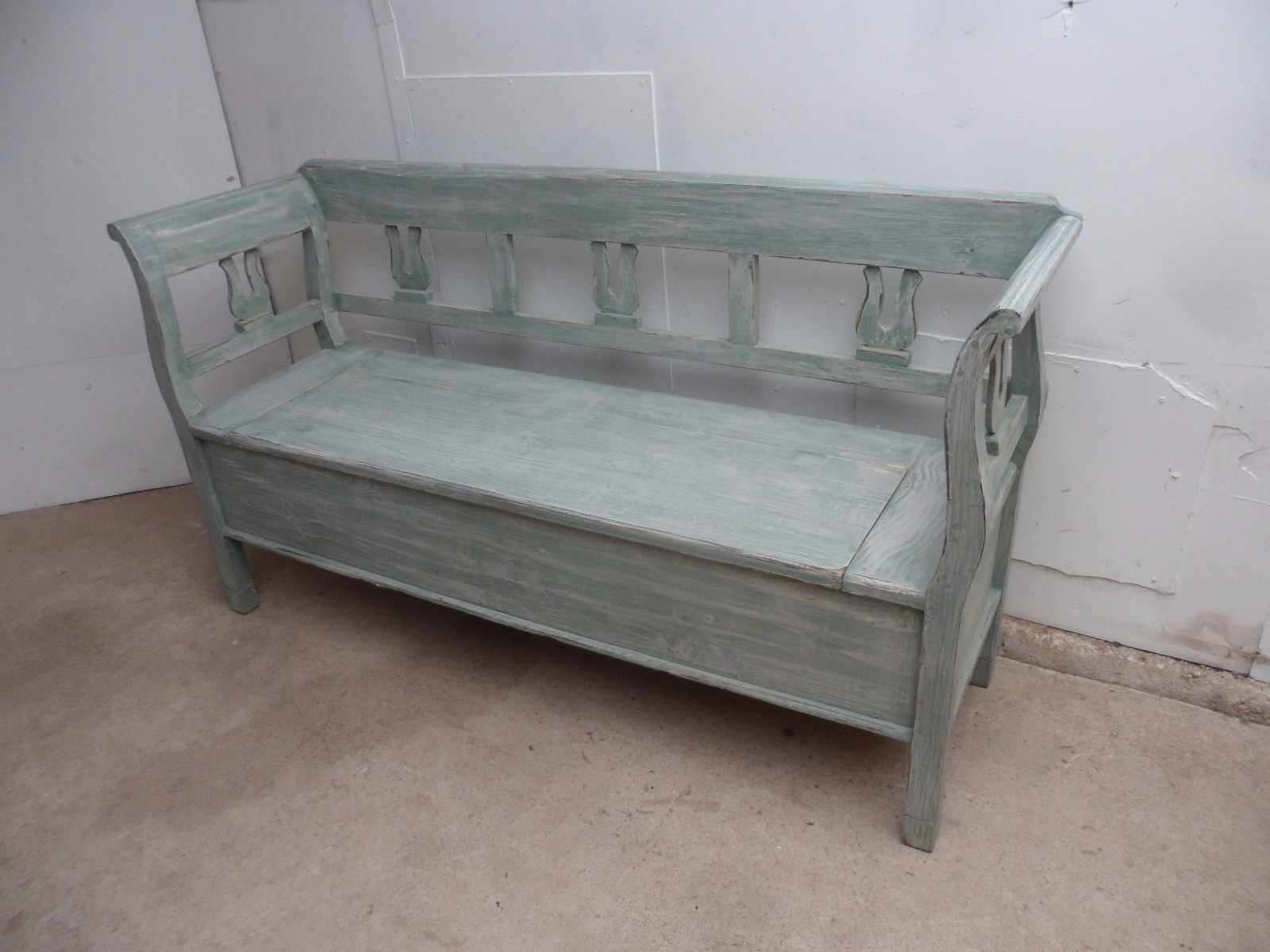 Fabulous Small 2-3 Seater Light Green Shabby Chic Box Settle / Bench c.1920