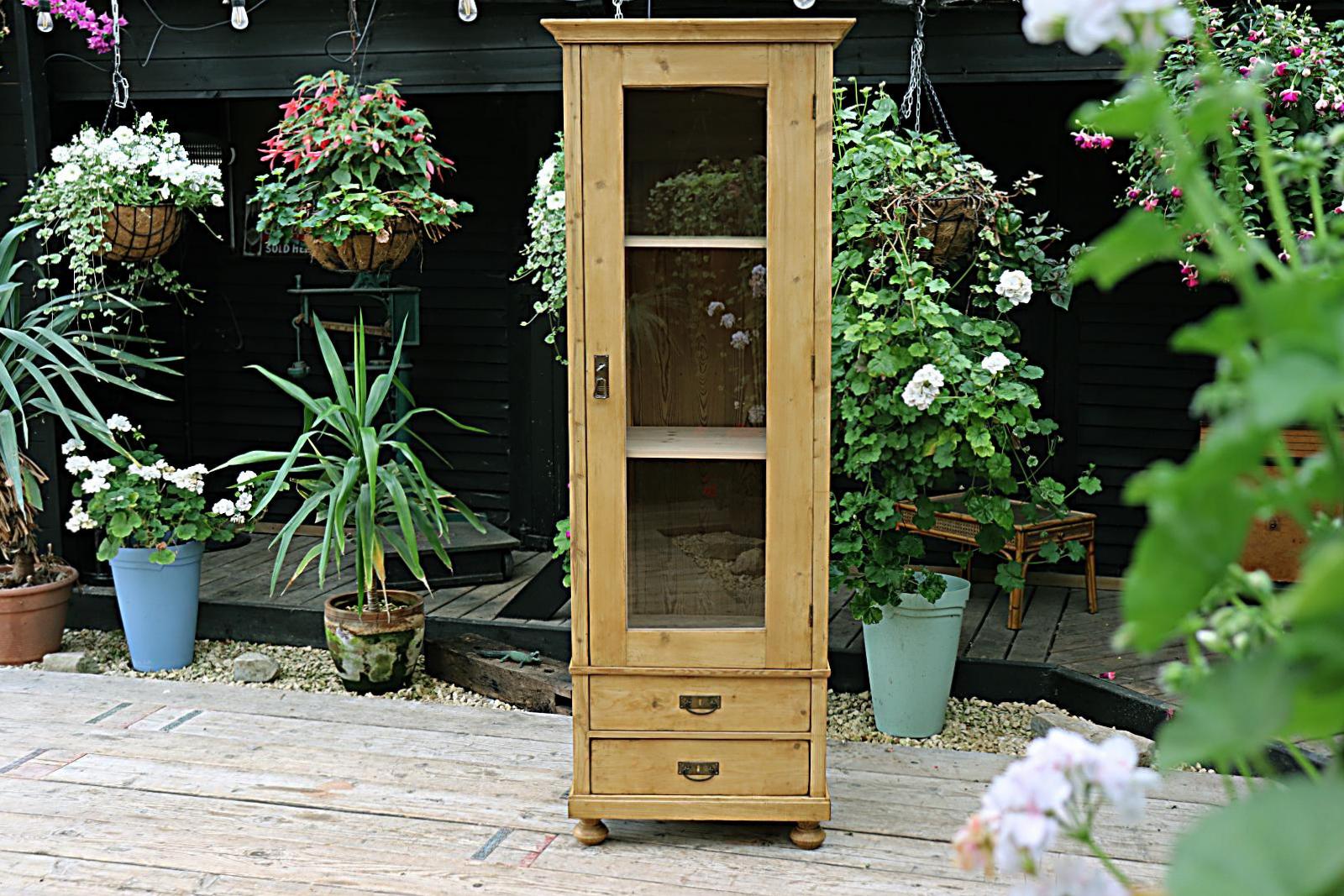 Fabulous! Tall Old Pine Glazed Cupboard / Display Cabinet / Shelves - We Deliver!
