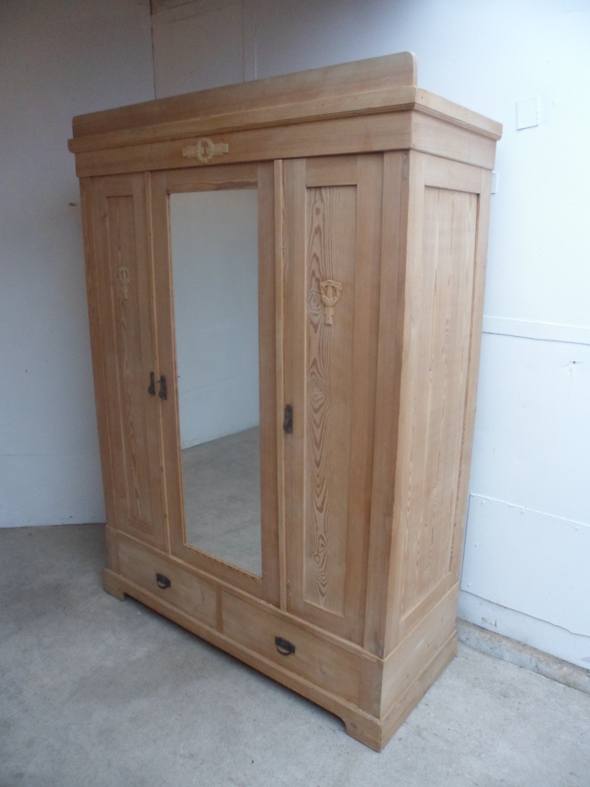 Fabulous Triple Mirror Large Old Pine Knockdown Wardrobe to paint / wax