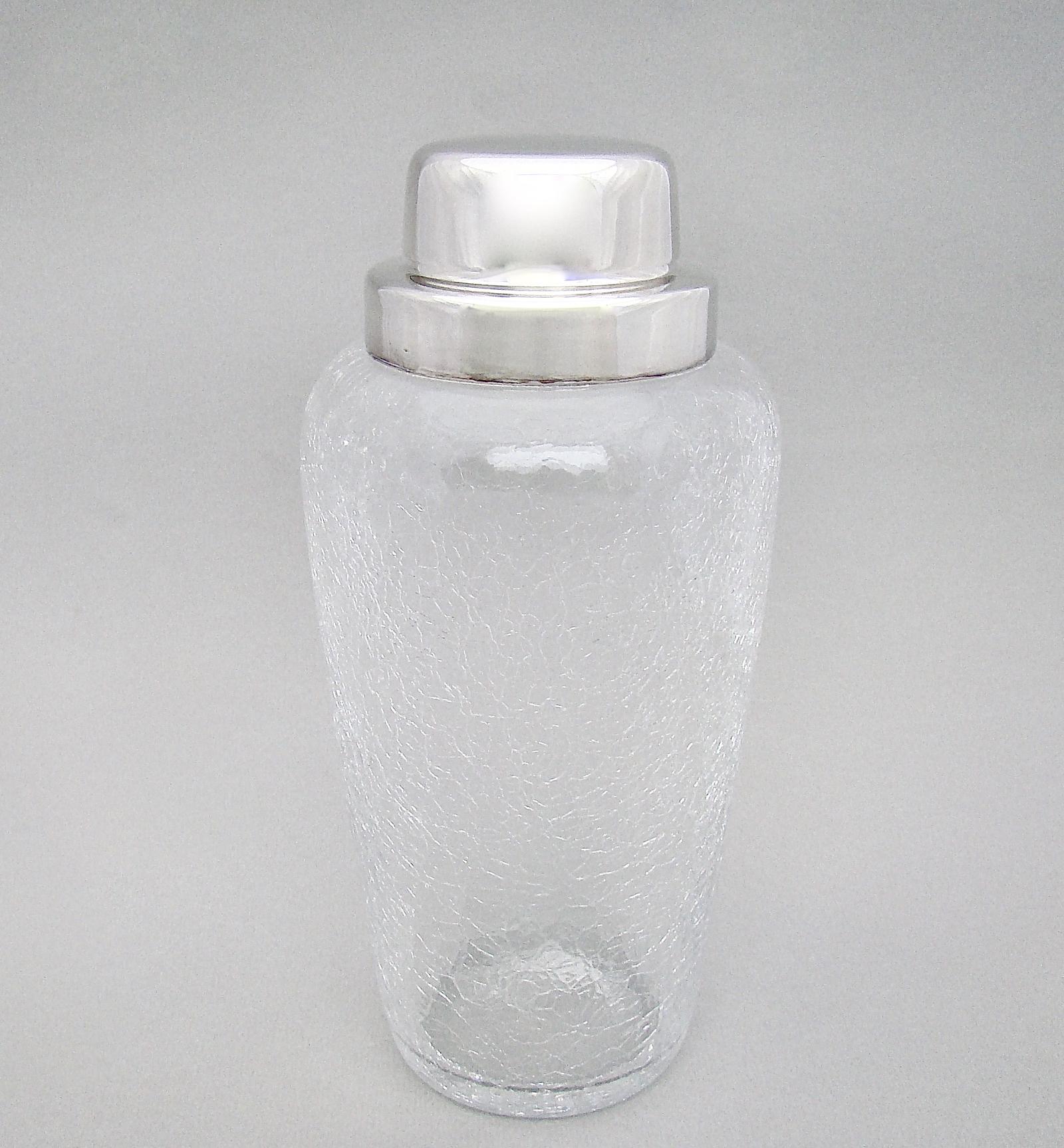 Fabulous "WMF" Art Deco Silver Plated & Crackle Glass Cocktail Shaker c.1930