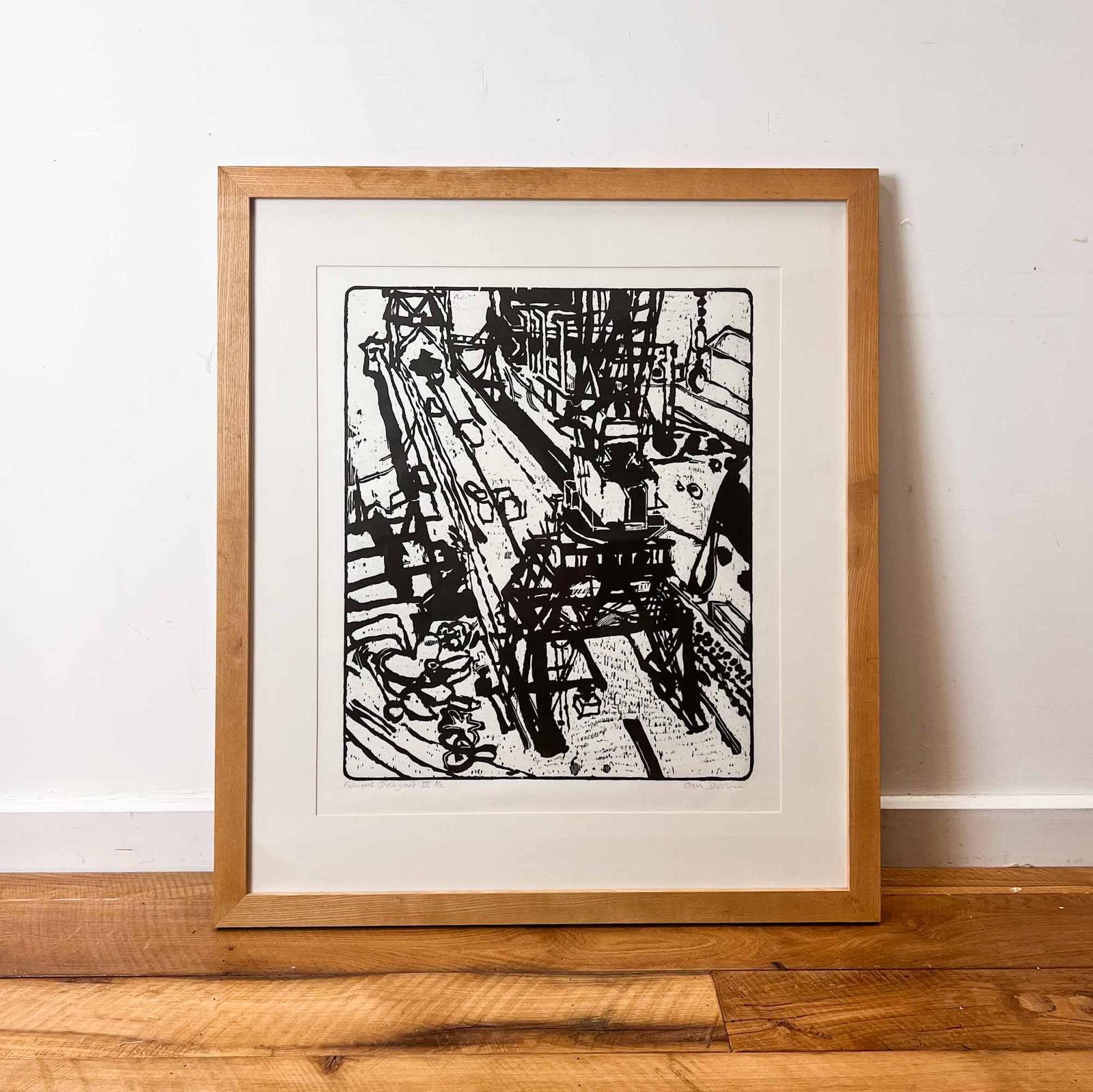 Falmouth Dockyards III by Stan Dobbin, Woodcut Print, No. 3 of 12