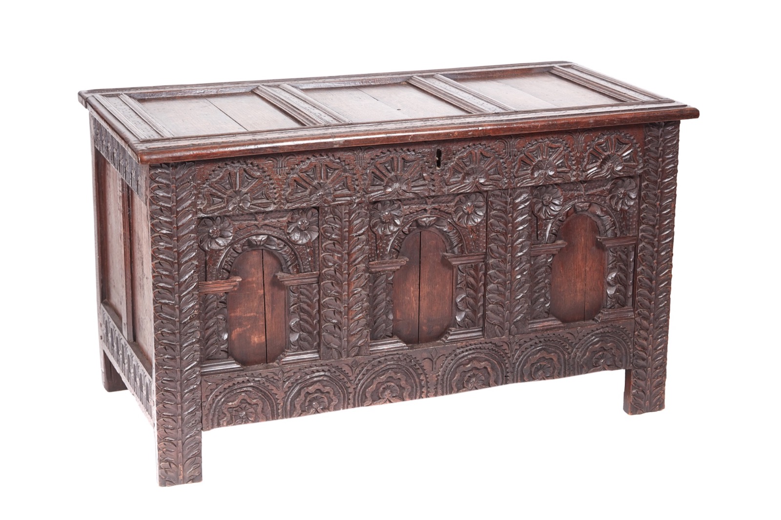 Fantastic 18th Century Antique Carved Oak Panelled Coffer