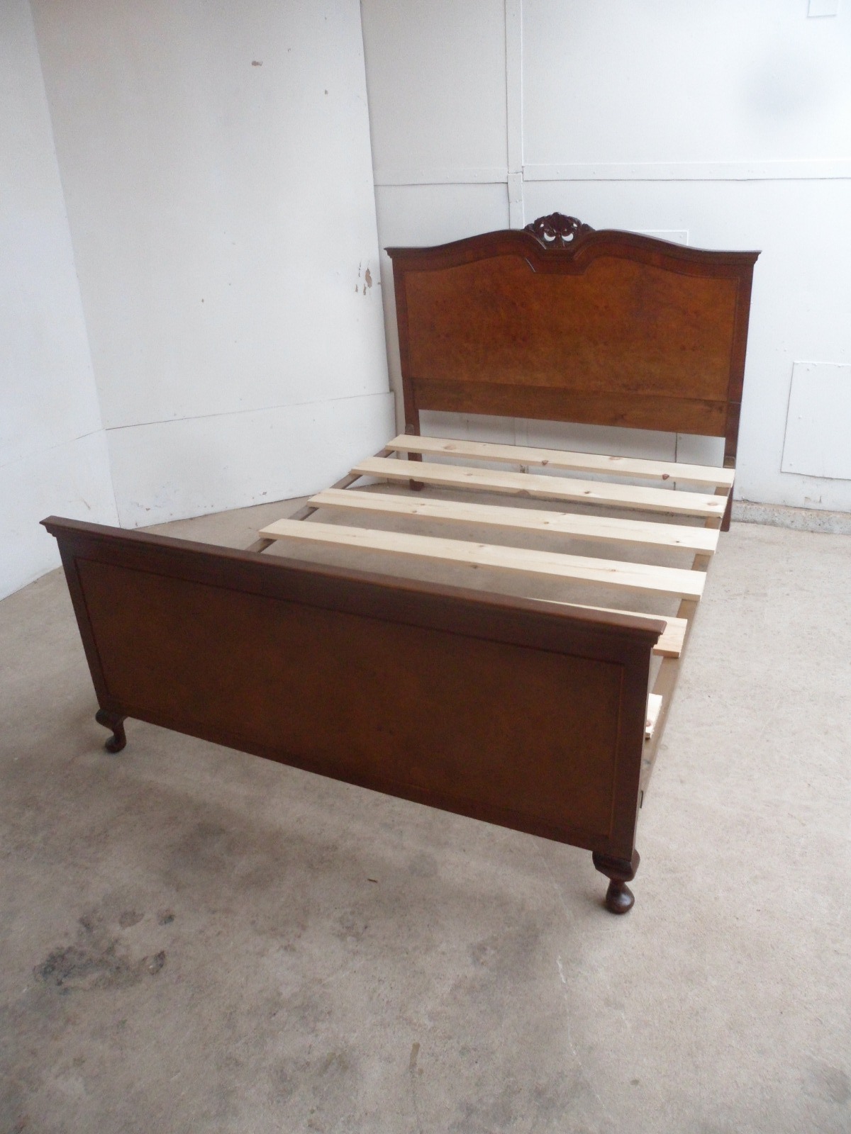 Fantastic 1950s Burr Walnut Standard Double Bed with Slats