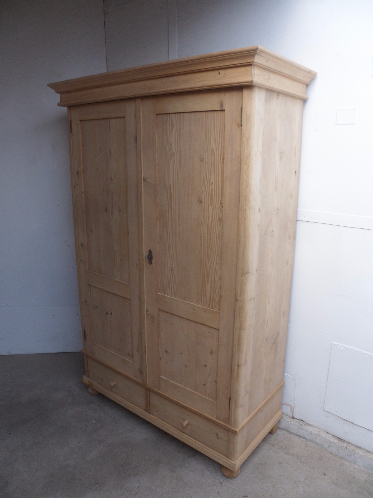Fantastic 2 Drawer 2 Door Old Pine Knockdown Wardrobe to wax / paint c.1920