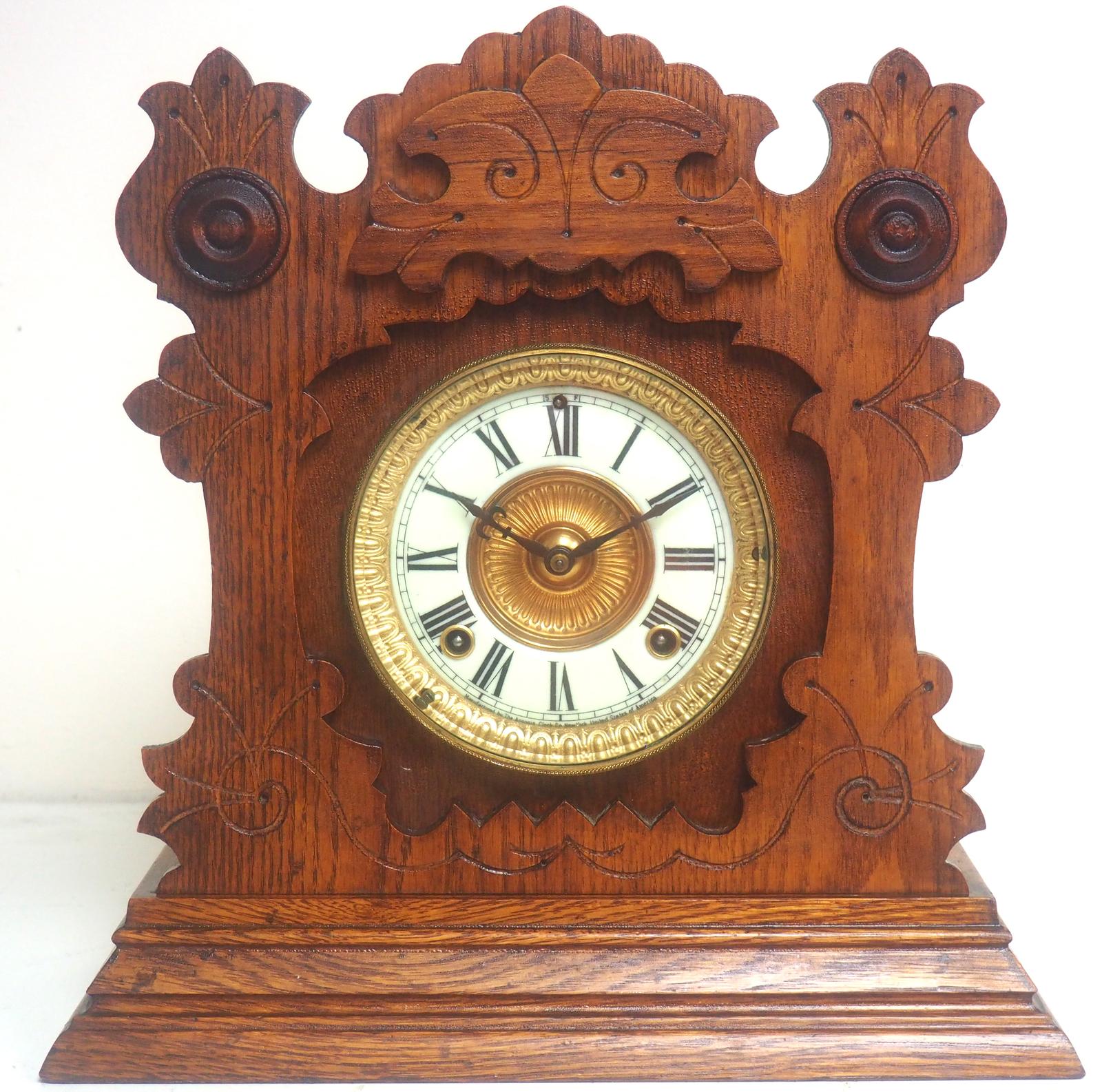 Fantastic American Gingerbread Mantel Clock – Antique 8 Day Striking Mantle Clock By Ansonia