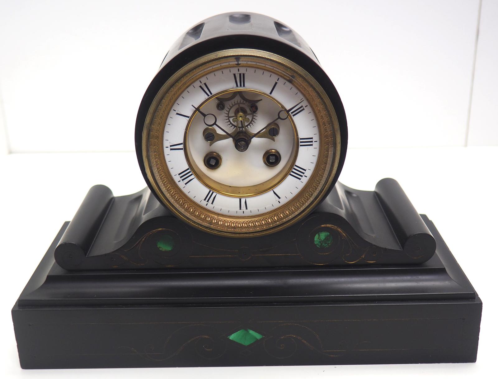 Fantastic Antique French Slate Drum Head Mantel Clock Wow! Striking 8-day Mantle Clock with Jewelled Pallets C1870
