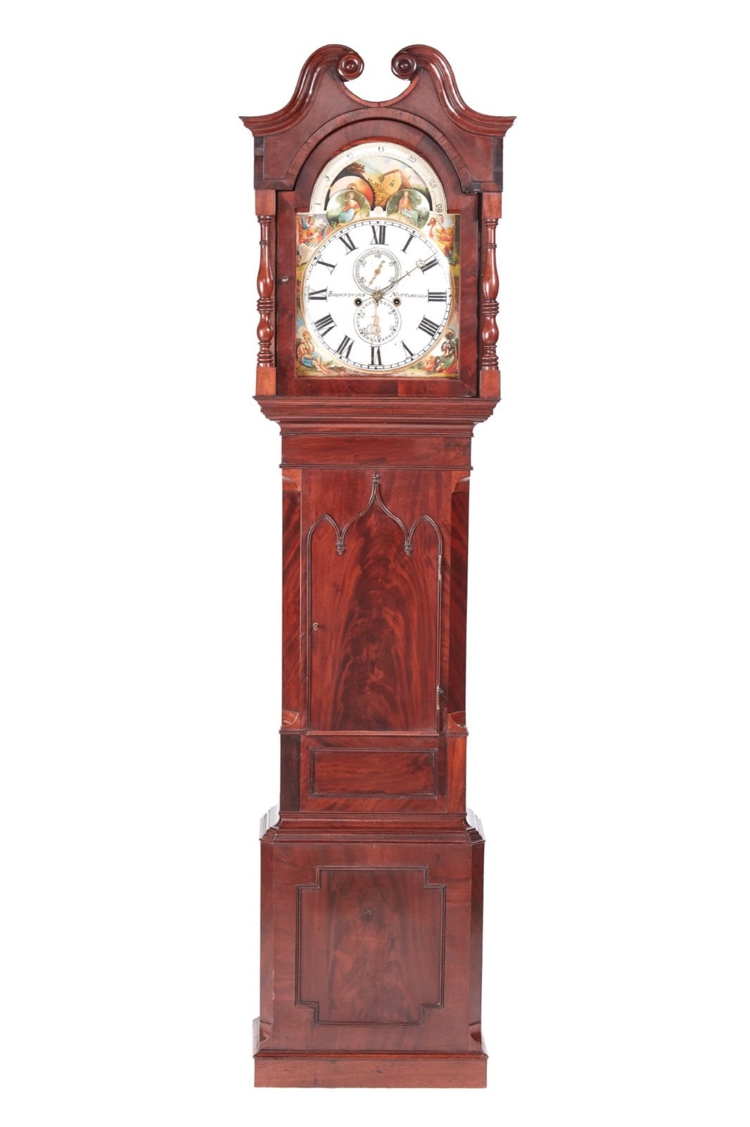 Fantastic Antique Mahogany 8 Day Painted Face Moonphase Grandfather Clock