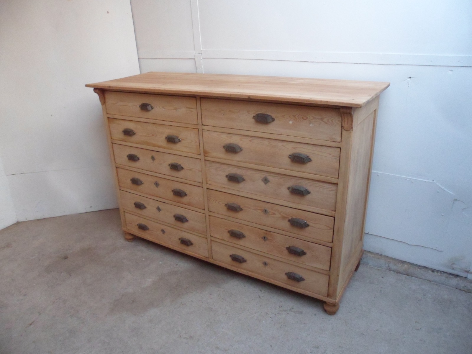 Fantastic Antique Pine 12 Drawer Shop Fitting / Chest of Drawers to paint / wax
